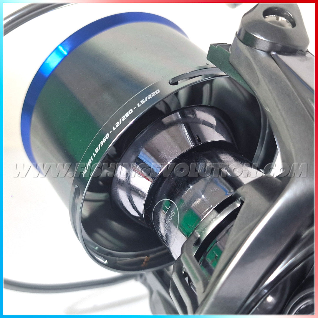 - Bobine: Include una bobina in alluminio leggero 8000 (capacità di 0,20 mm per 220 metri) e una bobina in alluminio leggero da 9000 (capacità di 0,30 mm per 280 metri) per diverse esigenze di pesca.