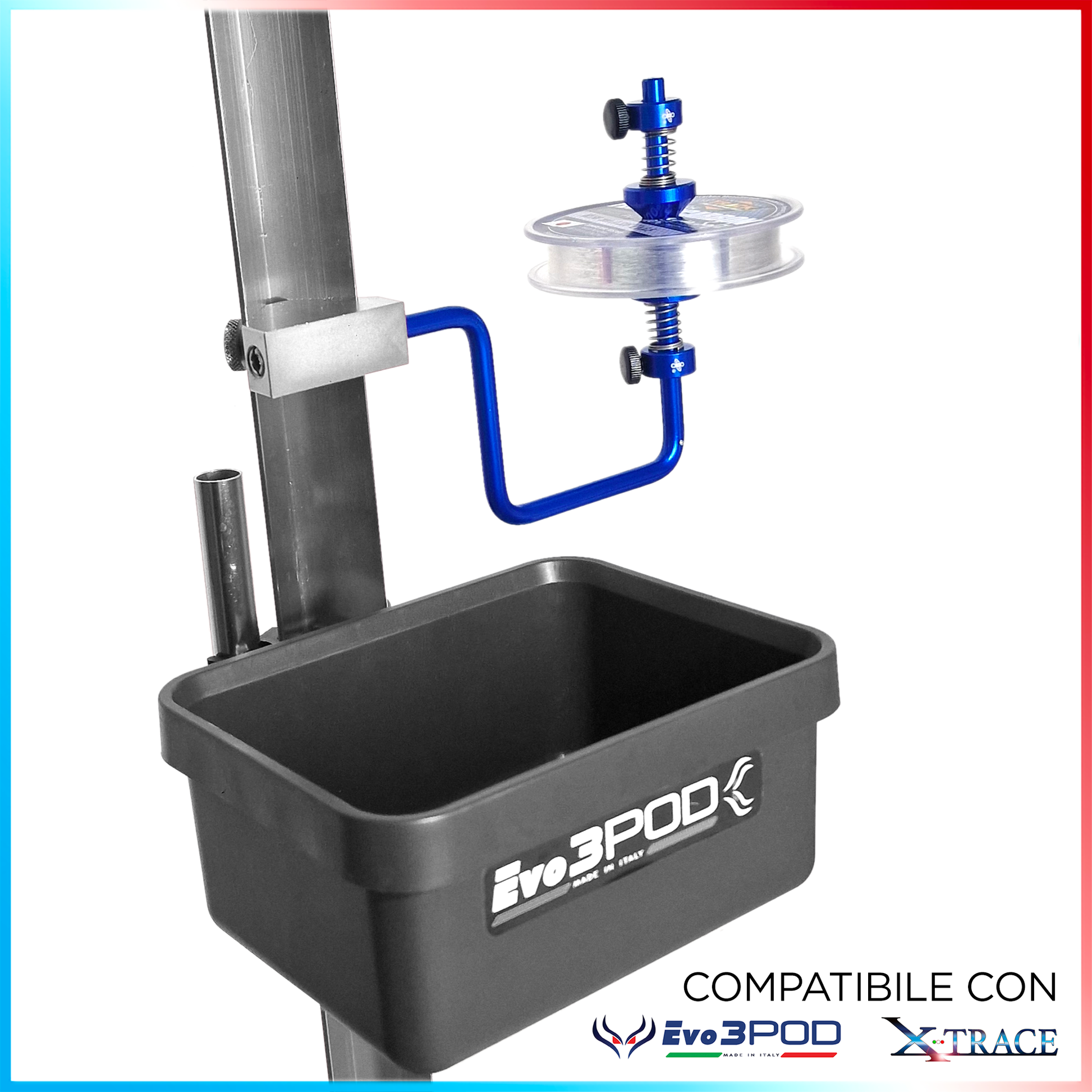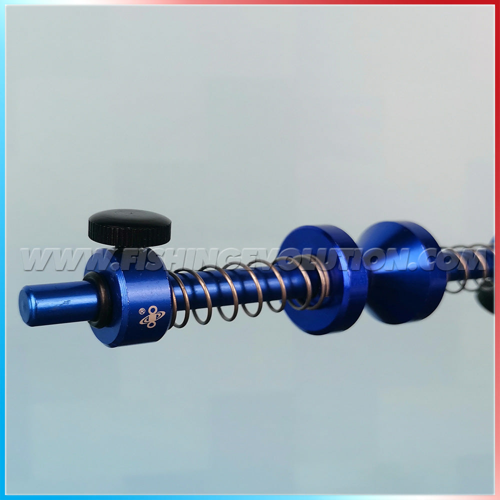 Very useful adjustable table spooler, made of blue anodized aluminium.