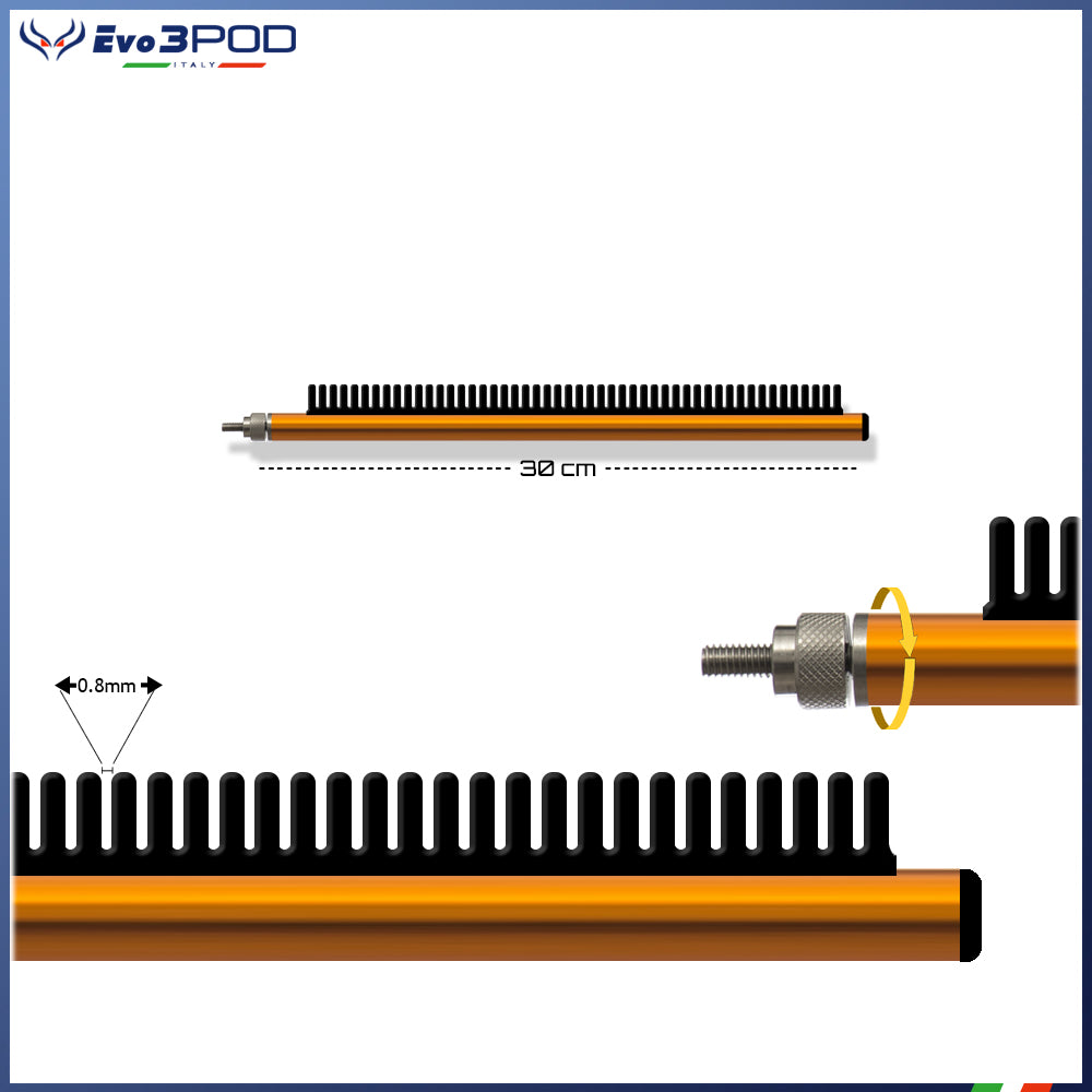 Braccetto stendi travi laterale su tubetto in alluminio con sistema a pettine da 30 cm adatto per essere montato a fianco alla canna per il trave da sostituire subito dopo.