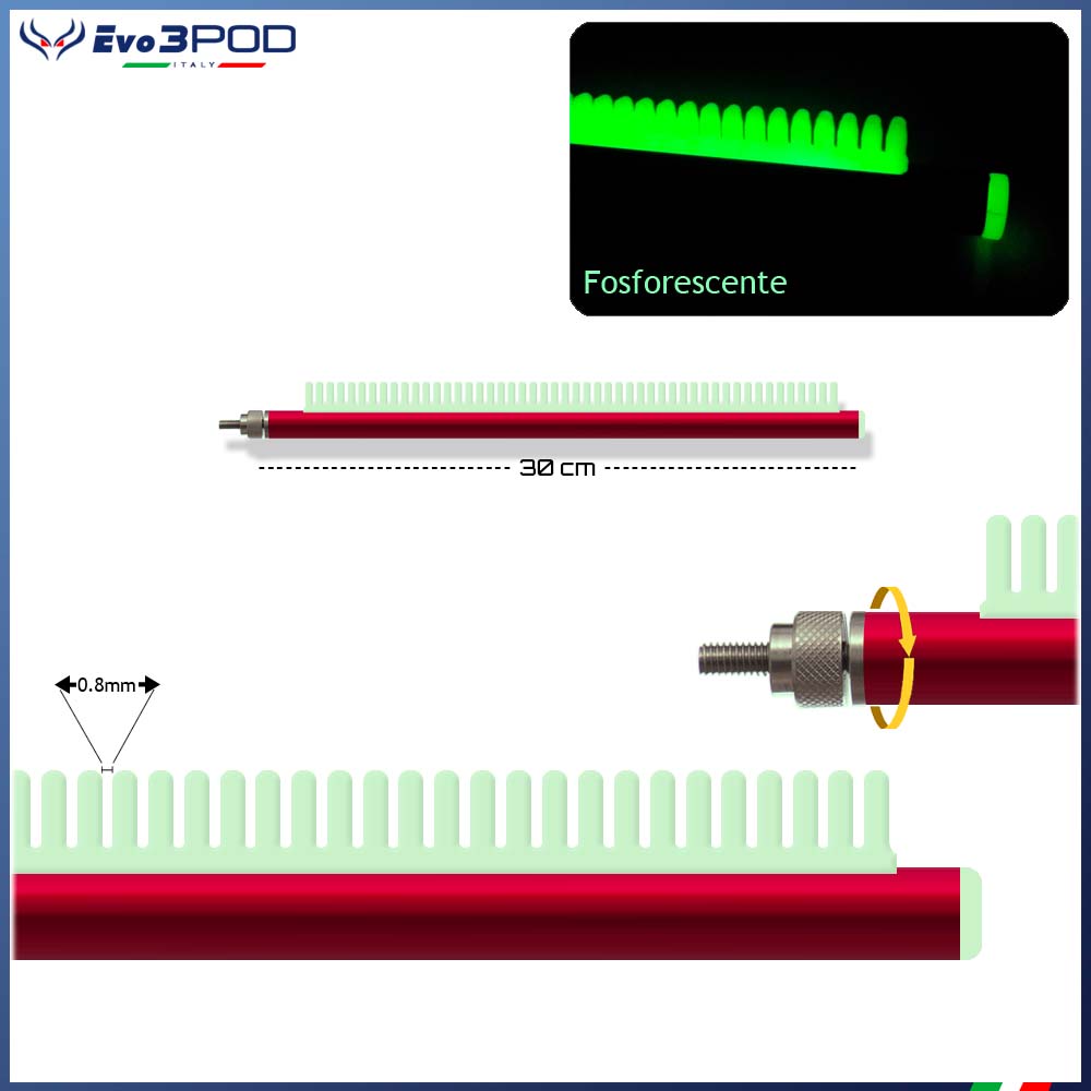 Grazie al contro dado di Bloccaggio inox è possibile posizionare il pettine in verticale, qualunque sia la diagonale del picchetto o tripode.