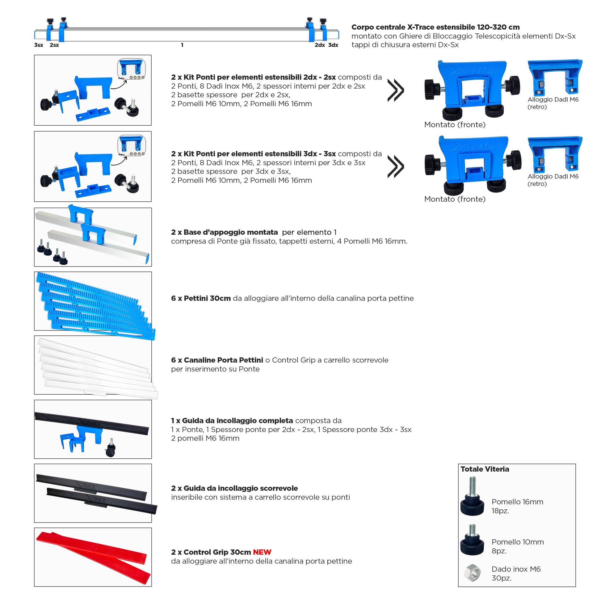- 7 ponts avec crochet de chariot coulissant/guides à dégagement rapide ou supports de peigne