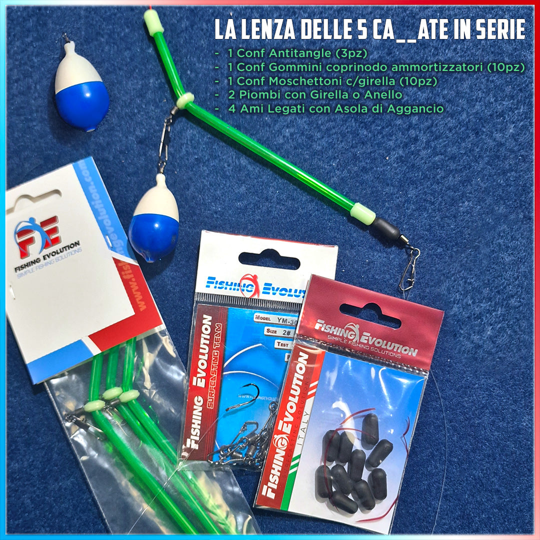 Il Kit Completo per la Lenza a Fondo con 5 CA🤐🤐ATE in Serie è la soluzione ideale per chiunque voglia pescare senza complicazioni.
