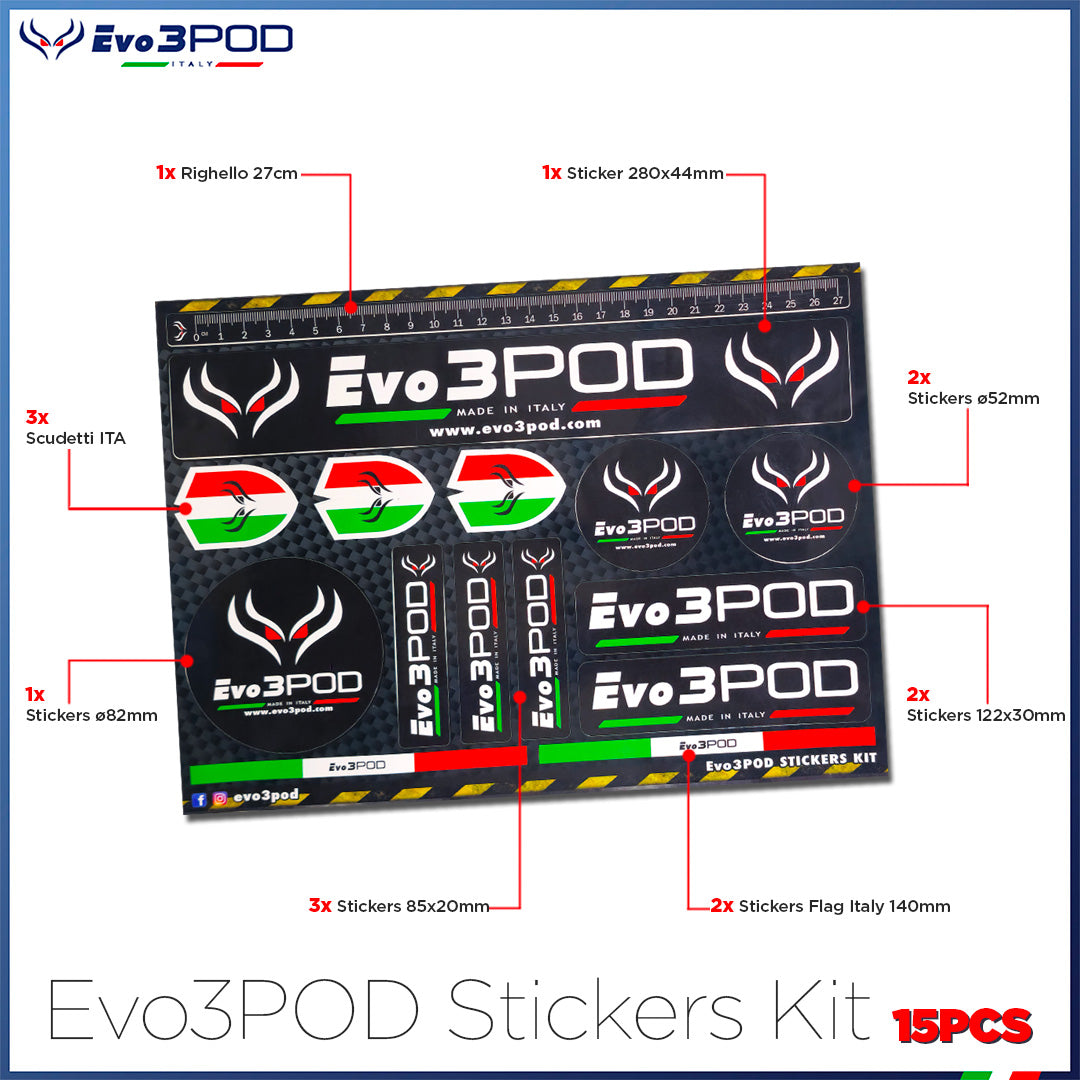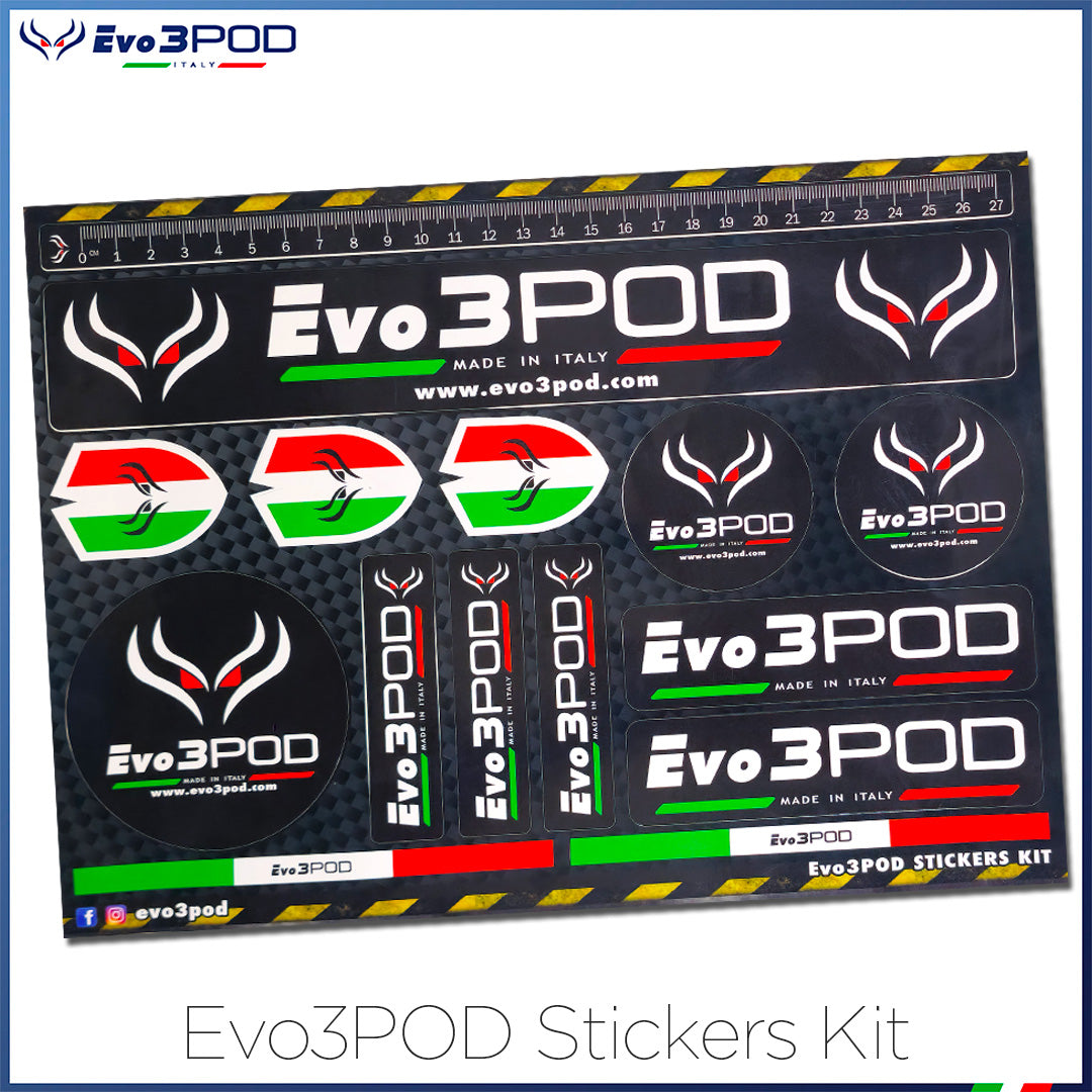 Set di 15 Adesivi Evo3POD da utilizzare su i vostri accessori ed attrezzature da pesca.
