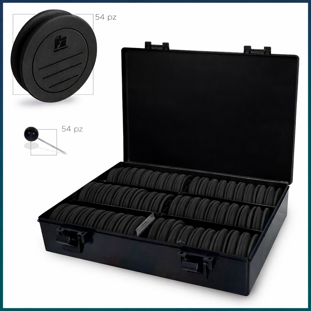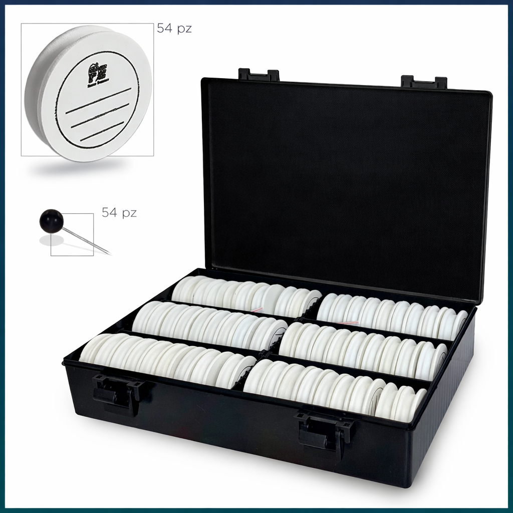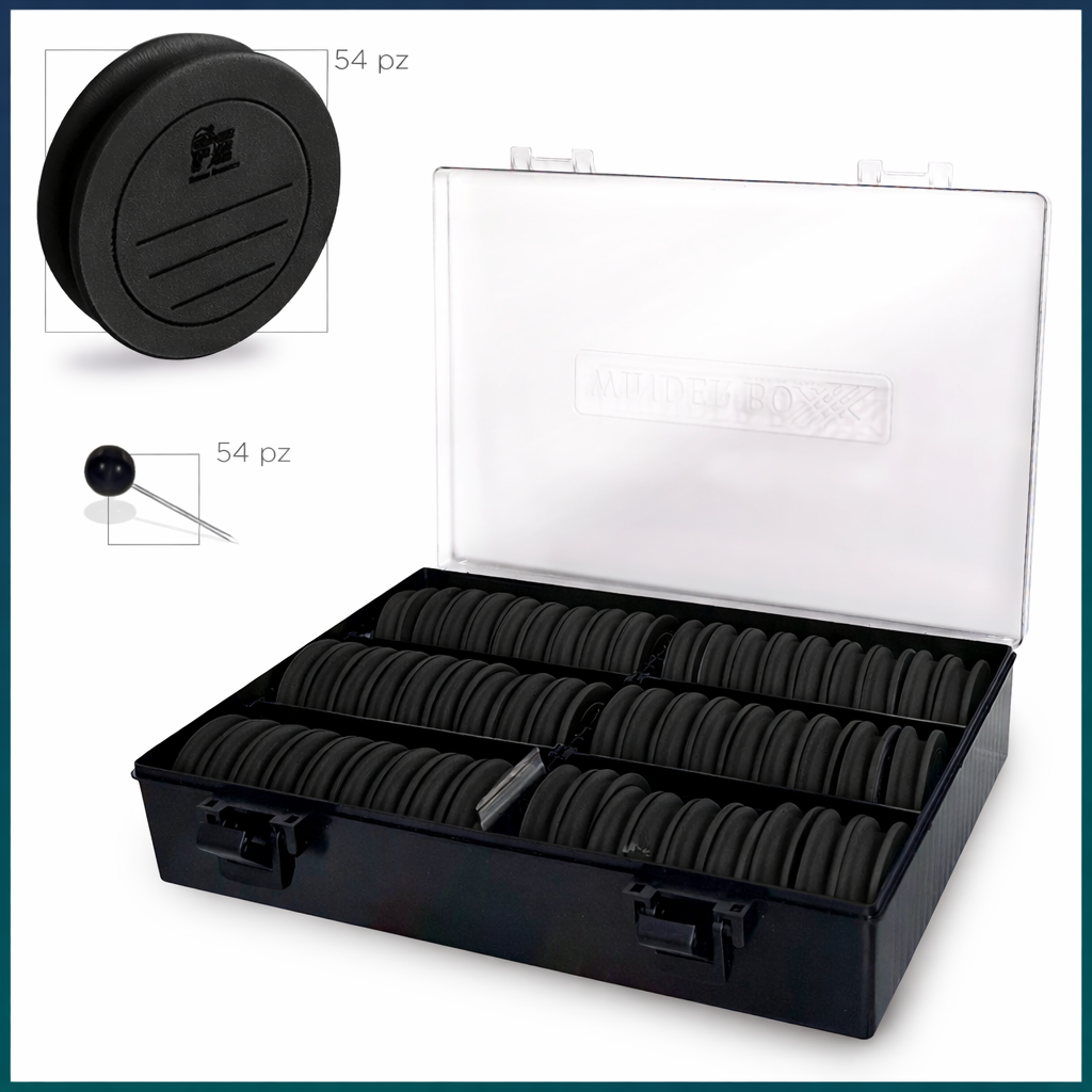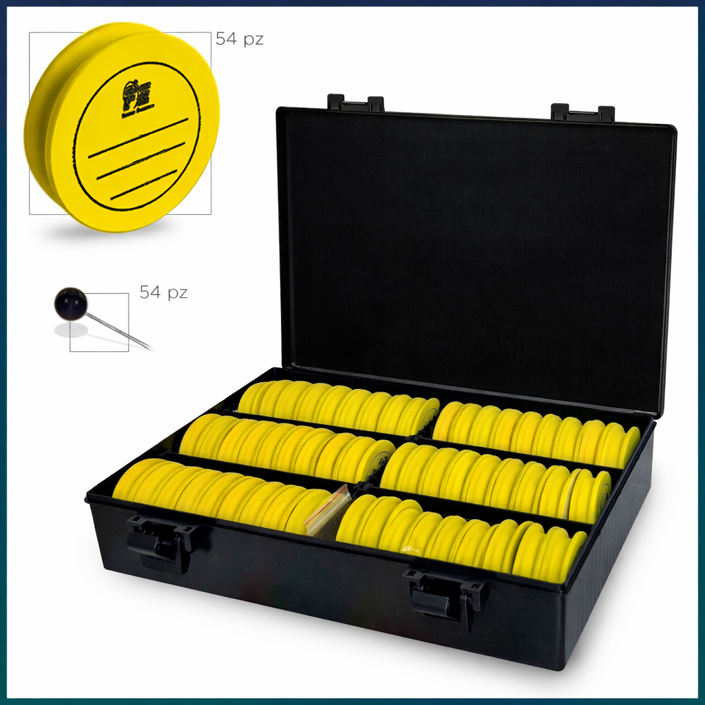 La scatola porta ruzzole migliore che sia, corredata ora con 54 delle nuove RUZZOLE della misura 65x17mm e di 54 spillini